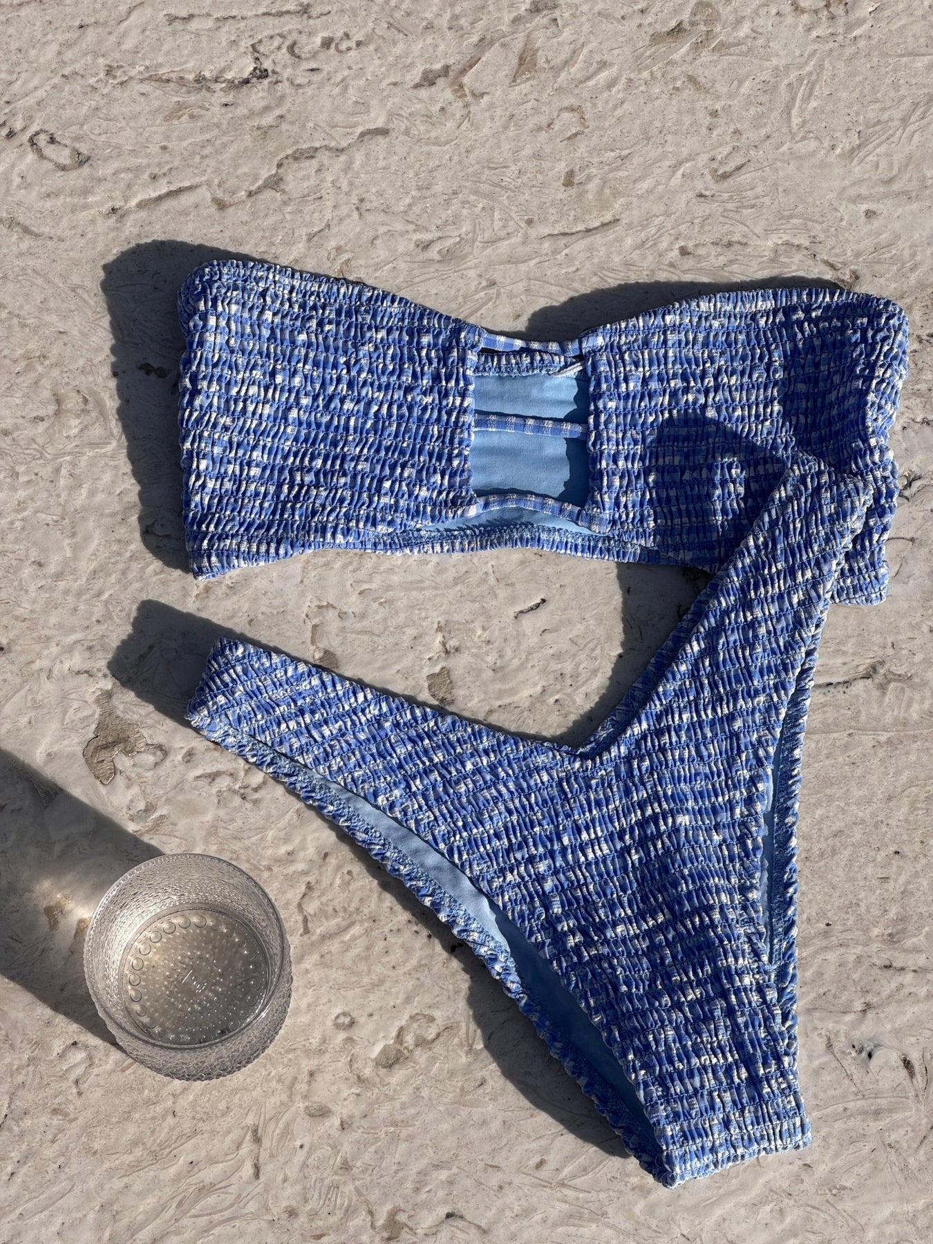 The high-cut and cheeky style that has become a JMP best seller. The Rio bikini bottom features an on-trend V-shape that flatters curves and will show off your bod in a way you won't believe. Rio in our Blue Gingham fabric is completely smocked, and offers very cheeky coverage.